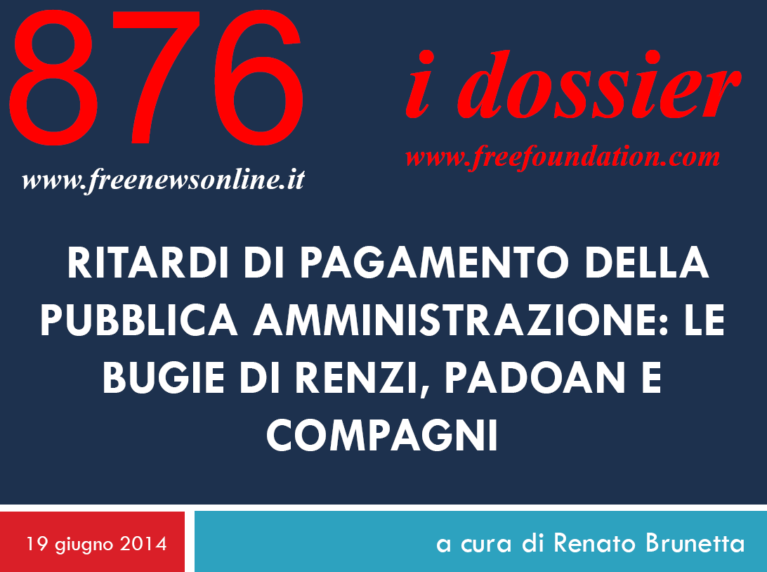 RITARDI DI PAGAMENTO DELLA PUBBLICA AMMINISTRAZIONE: LE BUGIE DI RENZI, PADOAN E COMPAGNI
