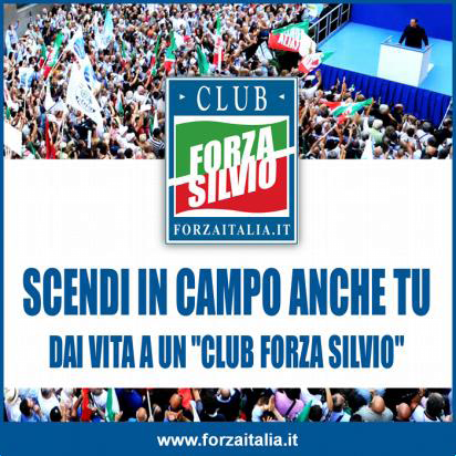 | Berlusconi ha detto una parola ieri che descrive lui e colora il futuro del nostro movimento, e dunque dell’Italia. Ha detto: festa. Il nuovo inizio è il giorno di una festa. L’8 dicembre a Roma si festeggia la nascita dei primi mille Club di Forza Silvio. Festa che non finisce con la sala da ripulire, e le luci che si spengono, ma che è punto di partenza di una battaglia dura ma bella da vivere. |