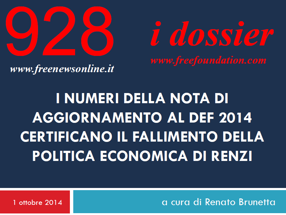 I NUMERI DELLA NOTA DI AGGIORNAMENTO AL DEF 2014 CERTIFICANO IL FALLIMENTO DELLA POLITICA ECONOMICA DI RENZI