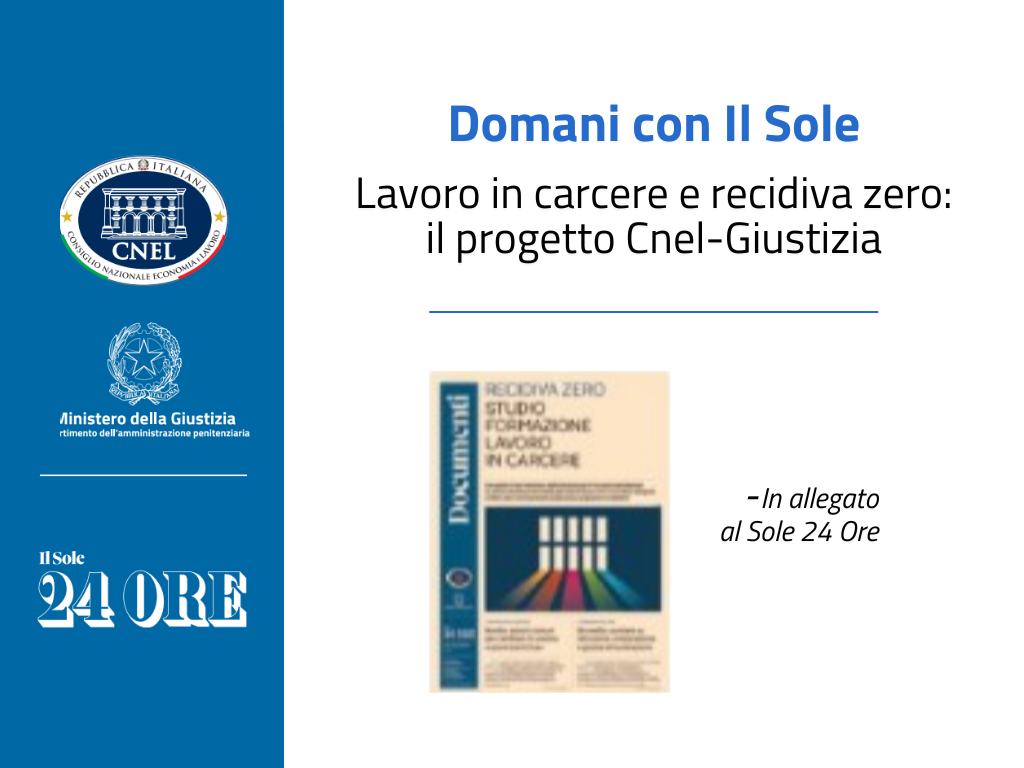 Domani con Il Sole l’allegato “Lavoro in carcere e recidiva zero: il progetto Cnel-Giustizia”