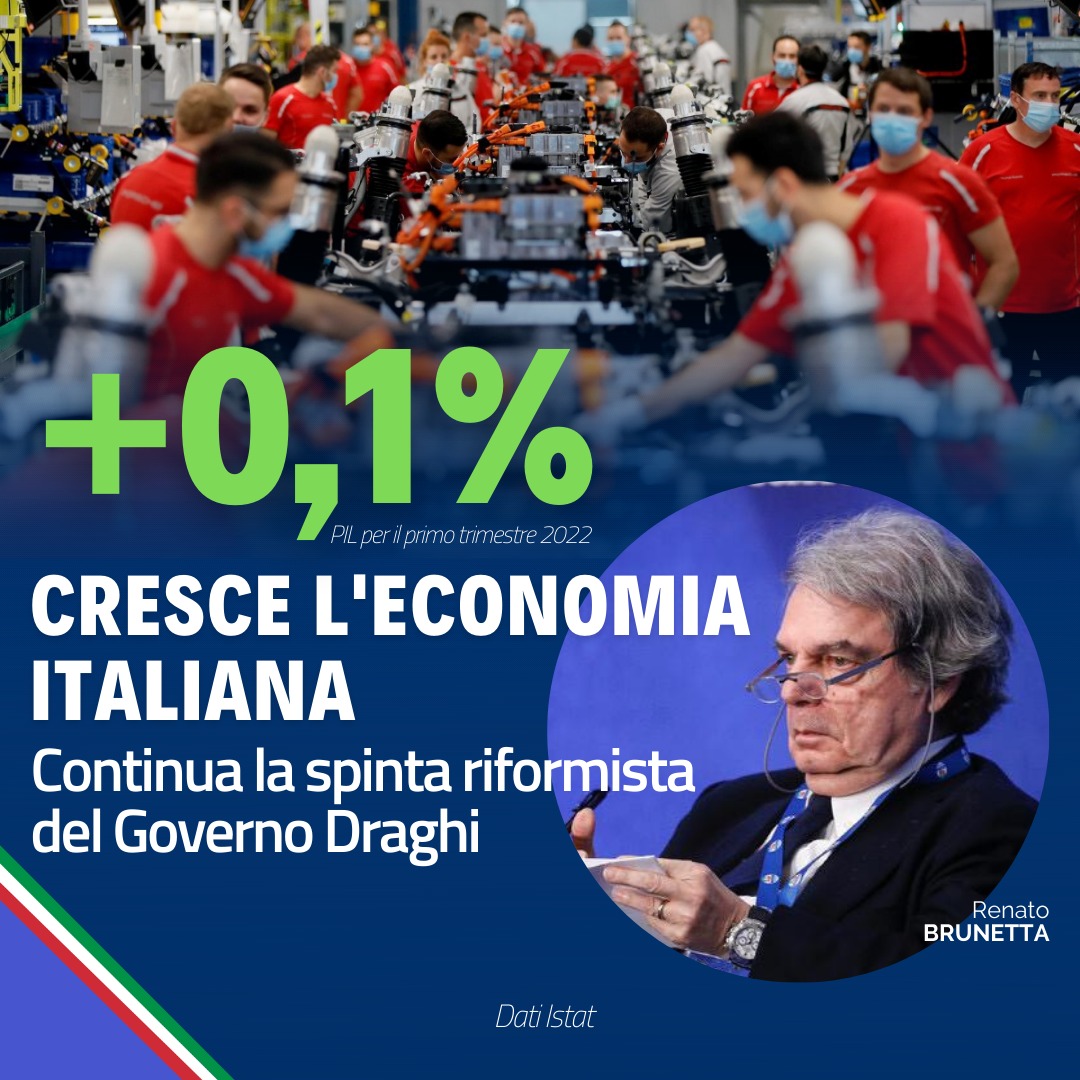 “L’economia italiana, ancora una volta, si dimostra più forte di qualsiasi pessimismo degli analisti, più o meno interessati. Oggi l’Istat, infatti, ha rivisto al rialzo il dato relativo al Pil al primo trimestre del 2022 consolidandolo al +0,1% su base trimestrale, in netto miglioramento rispetto alle precedenti stime di aprile (-0,2%).