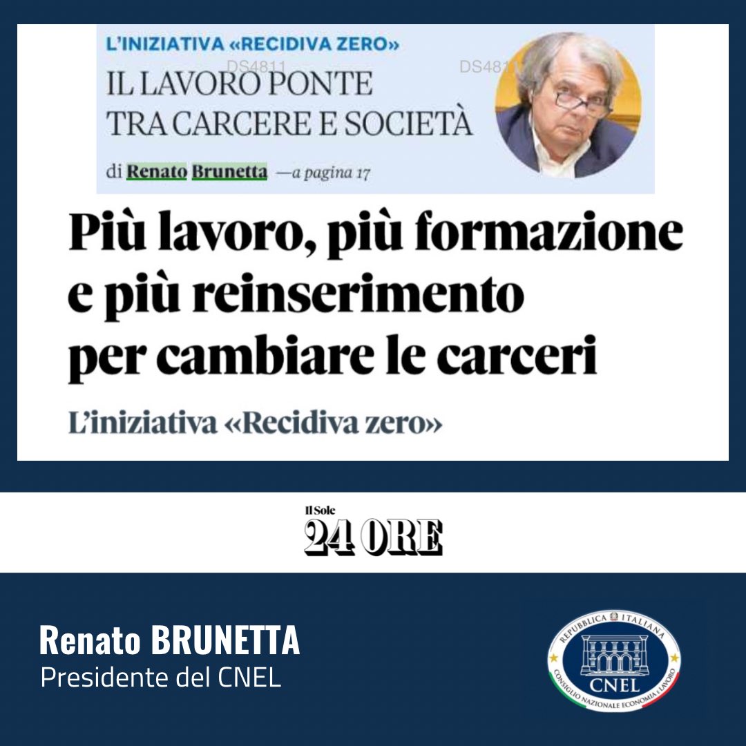 R.BRUNETTA (Editoriale su ‘Il Sole 24 Ore’): “Più lavoro, più formazione e più reinserimento per cambiare le carceri”